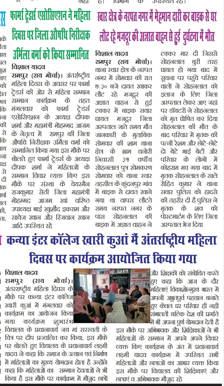 khari kuan, Rampur Rampur, Uttar Pradesh - 244901 +91 9412871090 [email protected]